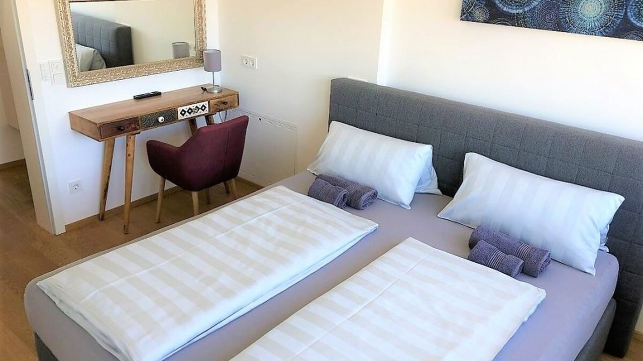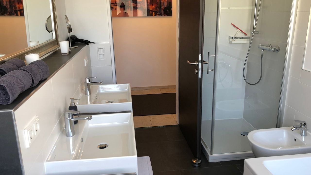 Die Wohnung ist komplett neu und nach dem Standard KfW-70. Sie besteht aus 3 geräumigen Schlafzimmern und ist insgesamt 140m² groß. Die gemütlichen Doppelbetten laden nach einem ereignisreichen Tag zum Relaxen ein. Im modernen und hellen Bad können Sie in der großen Badewanne entspannen. Zur Ausstattung der modernen Einbauküche gehören: Cerankochfeld, Backofen, Mikrowelle, Spülmaschine, Filterkaffeemaschine und Kühlschrank mit Gefrierfach. Im Wohnbereich sowie in jedem Schlafzimmer ist ein Fernseher vorhanden. Außerdem gibt es zwei Kinderhochstühle (Hauk), 2 Babybetten. Das Badezimmer ist mit Dusche, Badewanne und Doppelwaschbecken ausgestattet. Außerhalb der Wohnung befindet sich ein zweites Duschbad mit Waschmaschine und Trockner, welches gerne für Ihren Aufenthalt genutzt werden darf.