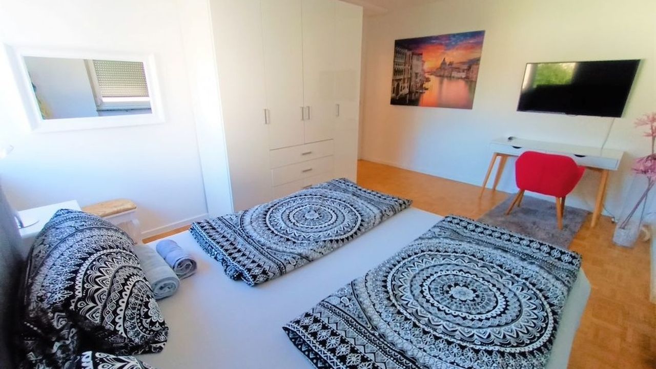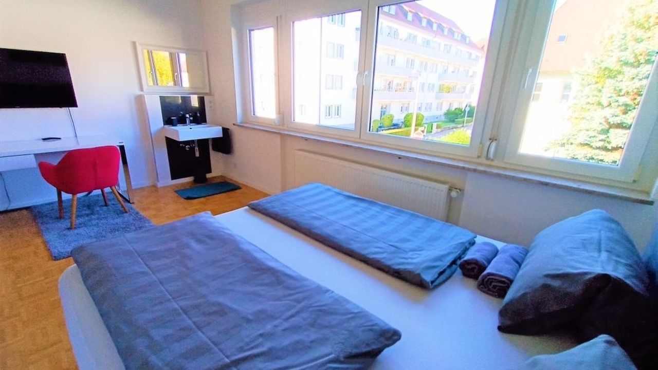 Die Ferienwohnung liegt so zentral in Friedrichshafen, dass fast alle Sehenswürdigkeiten, Unternehmen und Verkehrsanbindungen schnell zu erreichen sind. Trotzdem ist die Wohnung in einem verkehrsberuhigten Bereich mit einem schnellen Zugang zur Durchgangsstraße. Zum Bodenseeufer und zum Freibad sind es nur wenige Minuten, ebenso zu einer Bäckerei in der Nachbarschaft. Zum Stadtzentrum von Friedrichshafen sind es nur 950 m, zur Messe und zum Flughafen ca. 4,4 km.