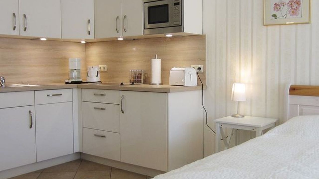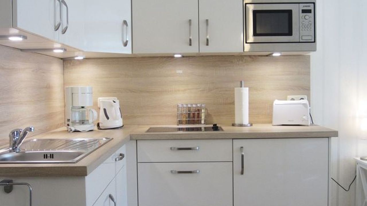 Eine gemütliche Küchenzeile enthält alles, was Sie zum Menü kreieren benötigen.