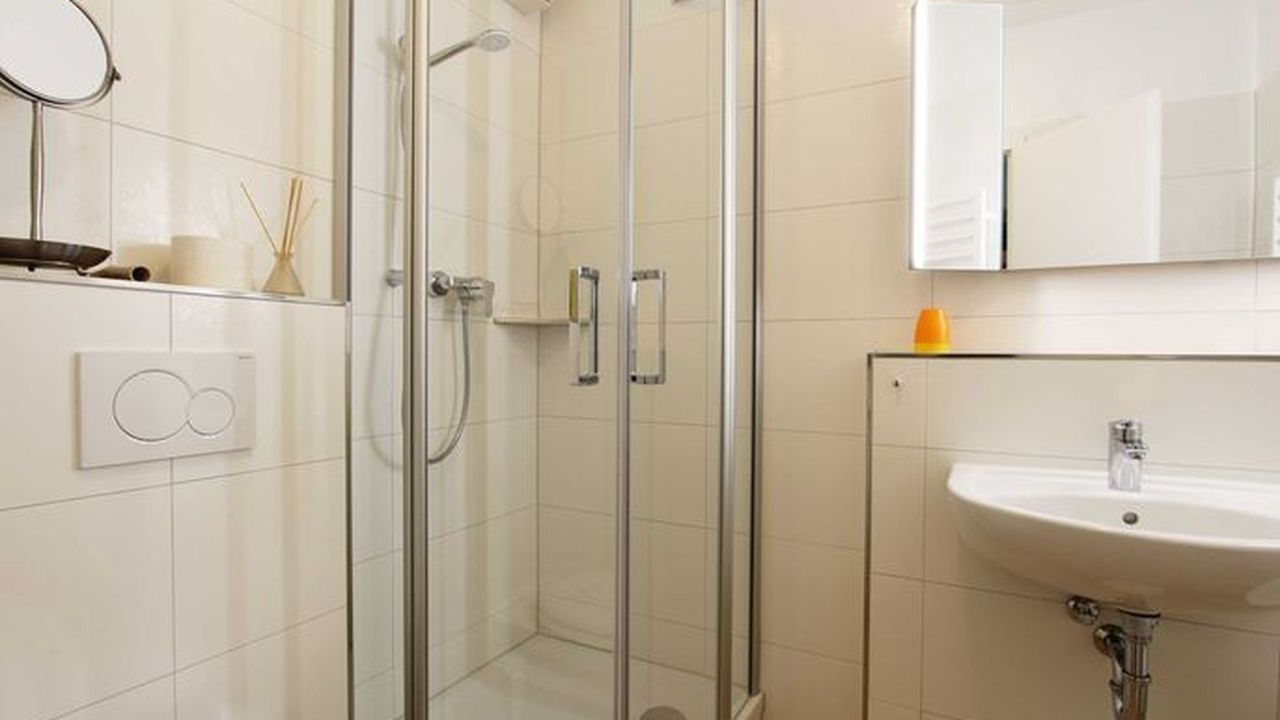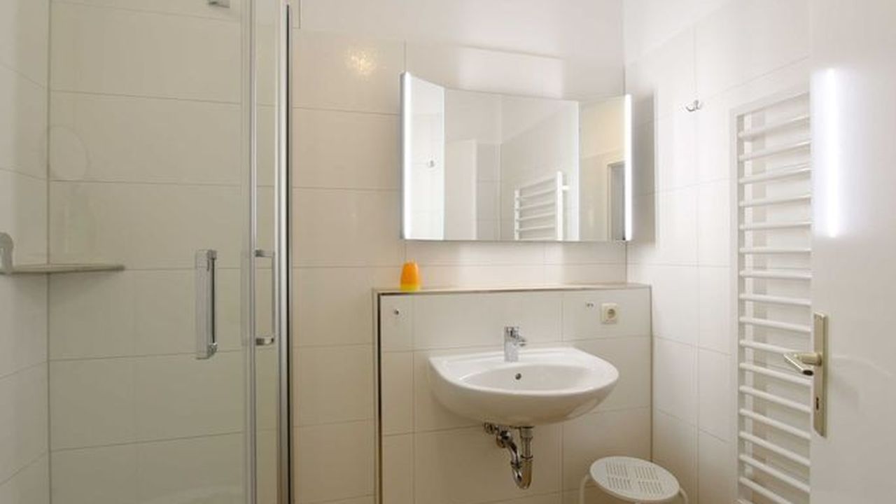 Das Bad ist 2020 grundlegend modernisiert worden mit flachem Duscheinstieg, großem