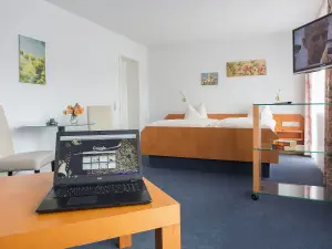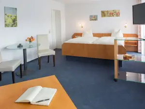 Unsere freundlich eingerichteten Gästezimmer – Einzelzimmer, Doppelzimmer und Appartements – verfügen über Dusche/WC, Radio, Telefon, SAT-TV mit Flachbildschirm, W-LAN und einen Balkon. Alle Zimmer, bis auf zwei, sind zusätzlich mit einer Kochnische ausgestattet. Es besteht die Möglichkeit unsere Zimmer wahlweise als Einzel- bzw. Doppelzimmer zu buchen ( Frühstück bereits im Preis enthalten ), oder Sie buchen die Zimmer als Appartements ( Frühstück kann dazu gebucht werden ).Mit dem Lift gelangen Sie bequem vom Untergeschoss in alle Etagen. Parkplätze befinden sich direkt vor dem Haus.