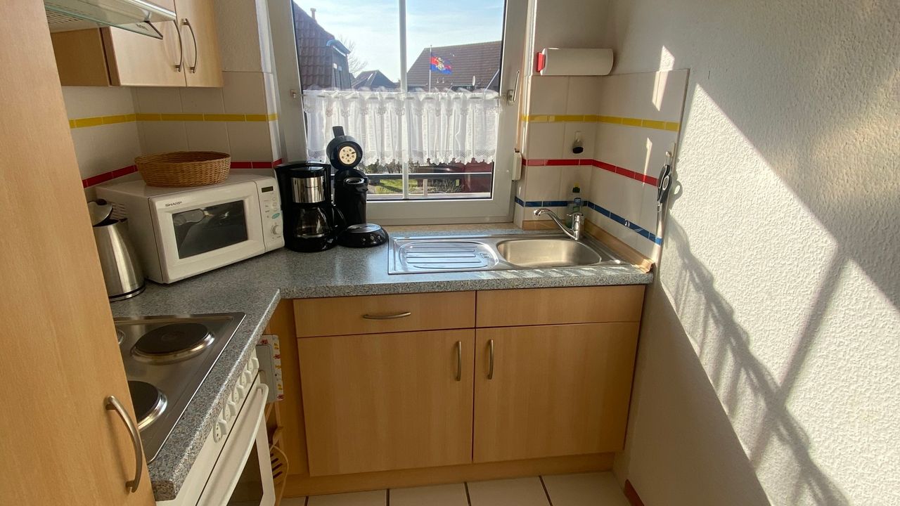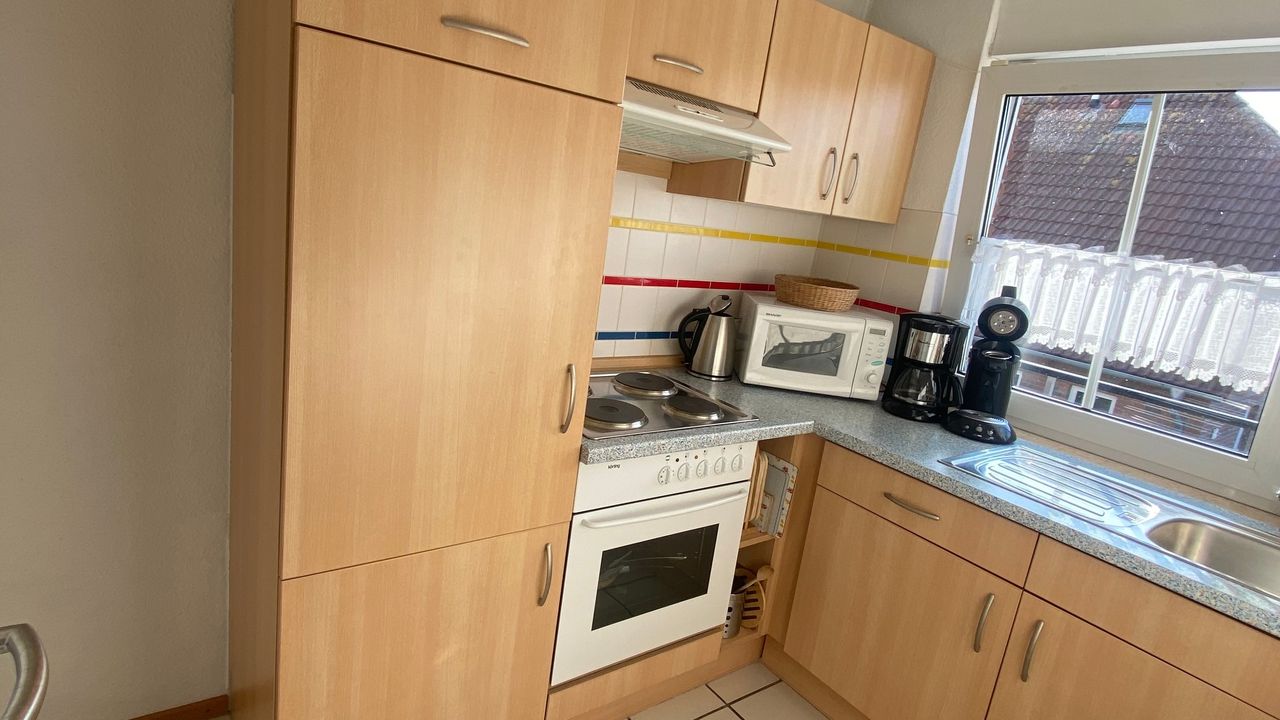 Die Wohnung (ca. 60m2) ist für 4 Personen (zzgl. Kleinkind) ausgerichtet und verfügt über 2 Schlafräume, 1 Wohn- Eßzimmer, separate Küche, Dusche/WC und 1 Balkon (Westseite mit herrlicher Abendsonne). Zusätzlich ist ein kleiner Garten, 1 Stellplatz am Haus und 1 Abstellraum für Fahrräder vorhanden.