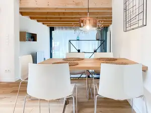 Die Ferienwohnung Fuchsbau befindet sich im Erdgeschoss einer Doppelhaushälfte in ruhiger Wohnlage von Scharbeutz nur ca. 600 Meter vom kilometerlangen Sandstrand entfernt. Die belebte[nbsp] Dünenmeile direkt an der Ostsee mit vielen Restaurants, Cafés, Strandbars und schönen Geschäften zum Bummeln sind bequem in ca. 15 Gehminuten zu erreichen. Ein Strandkorb steht von Mitte Mai bis Mitte September am Strand für Sie zur kostenlosen Nutzung bereit.Es erwartet Sie eine wunderschöne Ferienwohnung im hyggeligen Wohnstil, der Gemütlichkeit und Wohlbefinden vermittelt. Natürliche Materialien, warme Farben und ein durchdachtes Raumkonzept schaffen eine ganz besondere Atmosphäre, um wohl verdiente Urlaubstage zu genießen. Herzstück der Wohnung bildet der großzügige Essbereich mit offener Einbauküche in bester Ausstattung zum geselligen Beisammensein und gemeinsamen Kochen. Der um zwei Stufen abgesenkte Wohnbereich ist mit einem gemütlichen Ecksofa und TV eingerichtet. Die anschließende Holzterrasse in Südwest Ausrichtung ist großzügig angelegt und von einer Rasenfläche umgeben. Es gibt 2 Schlafzimmer, ausgestattet mit einem Doppelbett (180x200) und zwei Einzelbetten (90x200) sowie Verdunkelungsvorhängen bzw. Verdunkelungsrollo. Das hochwertige Bad mit Doppelwaschtisch, WC und Walk In Dusche ist lichtdurchflutet und großzügig gestaltet. Zusätzlich gibt es ein separates Gäste WC. WLAN steht selbstverständlich kostenlos zur Verfügung.