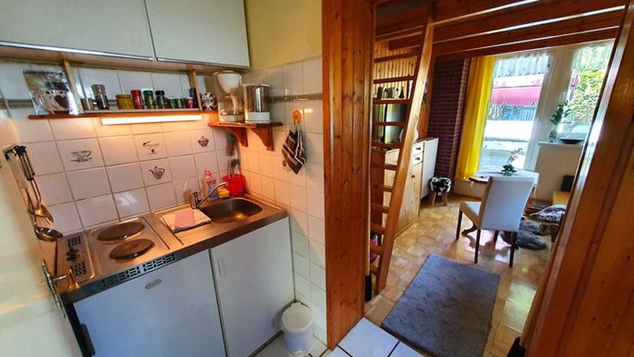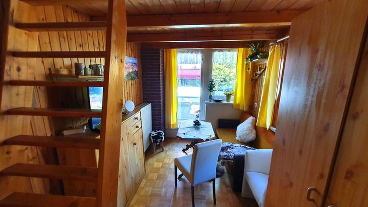 Das Ferienhaus ist schlicht und zweckmäßig eingerichtet und teilt sich in eine kleine Wohnküche und ein Wohnzimmer mit Zugang zur Terrasse auf. Das Bett befindet sich als Hochbett im Wohnbereich und ist über eine Leiter erreichbar. In der Wohnküche steht Ihnen eine kleine Singleküche mit Kühlschrank und 2 Plattenherd, eine Kaffeemaschine, ein Wasserkocher, ein Esstisch mit Couch und Stühlen zur Verfügung. Es wird empfohlen, Bettwäsche und Handtücher mitzubringen. Alternativ können Sie das Wäschepaket gegen Gebühr zu buchen. Hinweis: Bei dem Bett handelt es sich um eine Matratze von 2,00 x 2,00 m. Bitte bedenken Sie bei der Mitnahme, dass das Laken eine entsprechende Größe haben muss.Sonstiges
