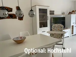 Smart-TV/Radio/Satellit, Kaffeemaschine, Toaster, Elektro-Herd mit Backofen, Mikrowelle, Kühl-Gefrierkombination, Staubsauger, Waschmaschine, Haartrockner, Bügeleisen, Bügelbrett, optional 1 Kinderhochstuhl, Gartenmöbel, Grill.