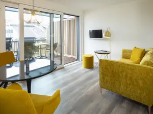 Im gemütlichen Schlafzimmer mit eigenem Balkon finden Sie ein komfortables Doppelbett sowie adäquate Staumöglichkeiten. Besondere und nachhaltige Materialien verschönern Ihren Schlaf und lassen Sie geborgen fühlen.