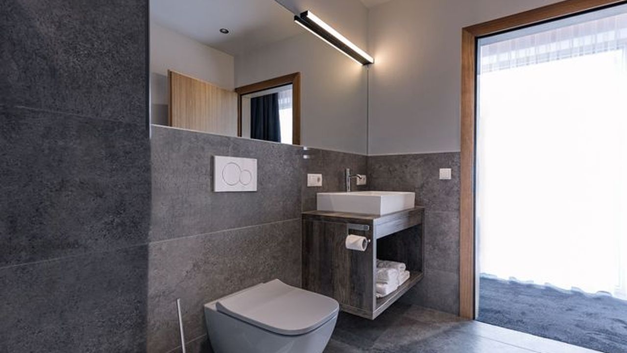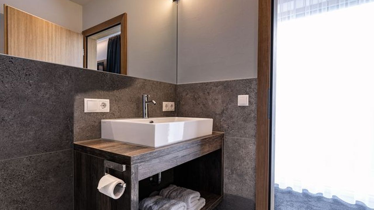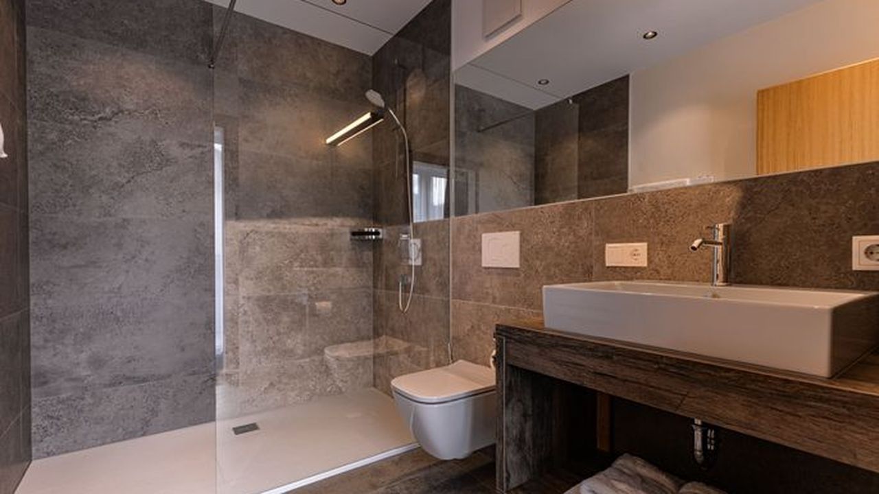 jedes Doppelzimmer mit eigenem Bad und grosser begehbarer Dusche (Fön, Dusch- Hand- und Saunatücher)