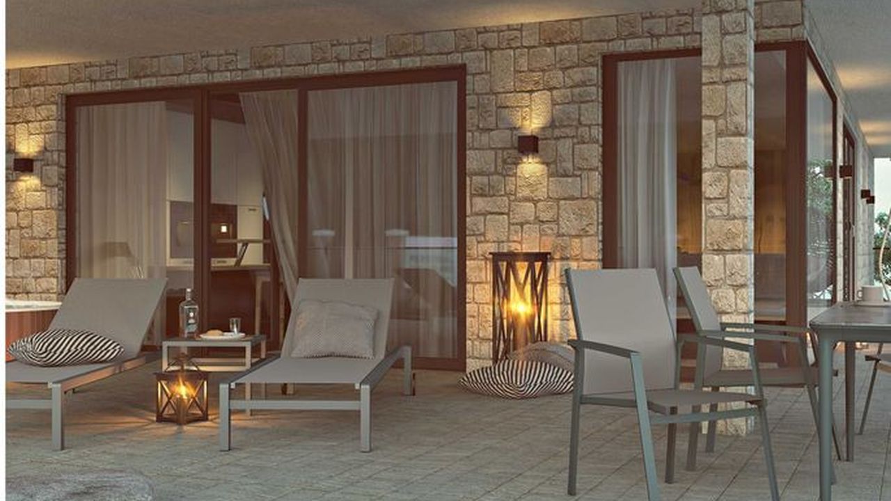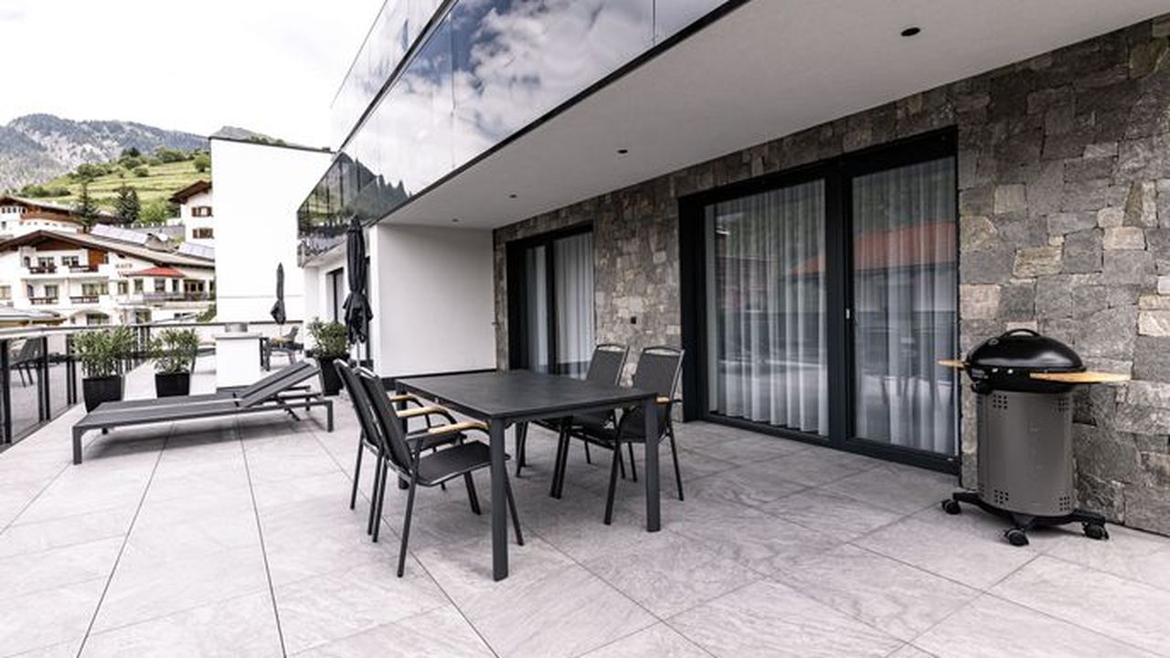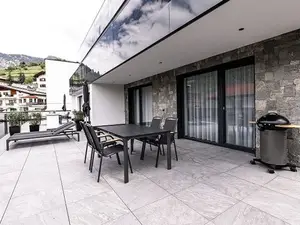 Auf der fast 100m2 grossen Terrasse, die südseitig, teilweise überdacht und mit Outdoormöbeln ausgestattet ist können sie entspannen, ihr Frühstück oder an lauen Abenden Ihr Abendessen genießen.