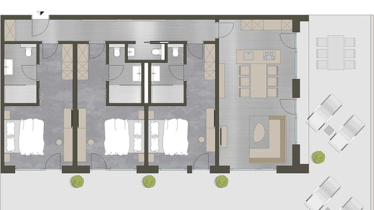 Das Apartment ist ca. 117m2 groß und komfortabel ausgestattet,Es verfügt über 3 grosse Doppelzimmer mit Doppelbetten (Bettwäsche, Betten und Kissen vorhanden) Safe und TV
