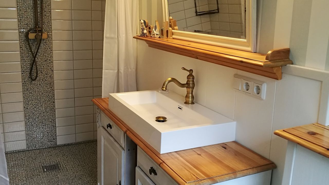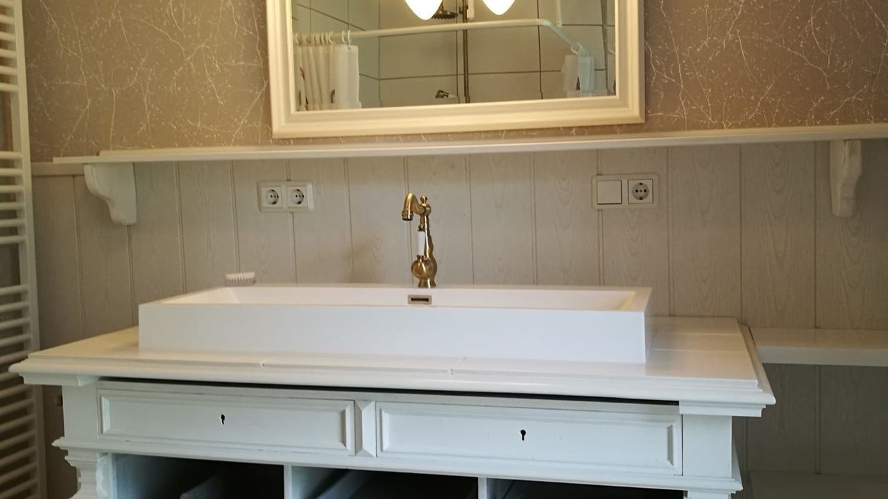 Ferienwohnung mit 2 Schlafzimmern und 2 großen Bädern, Nähe Greetsiel.Es erwartet Sie eine hochwertig renovierte und im Landhausstil eingerichtete Parterrewohnung in Pewsum, dem Verwaltungszentrum der Krummhörn.