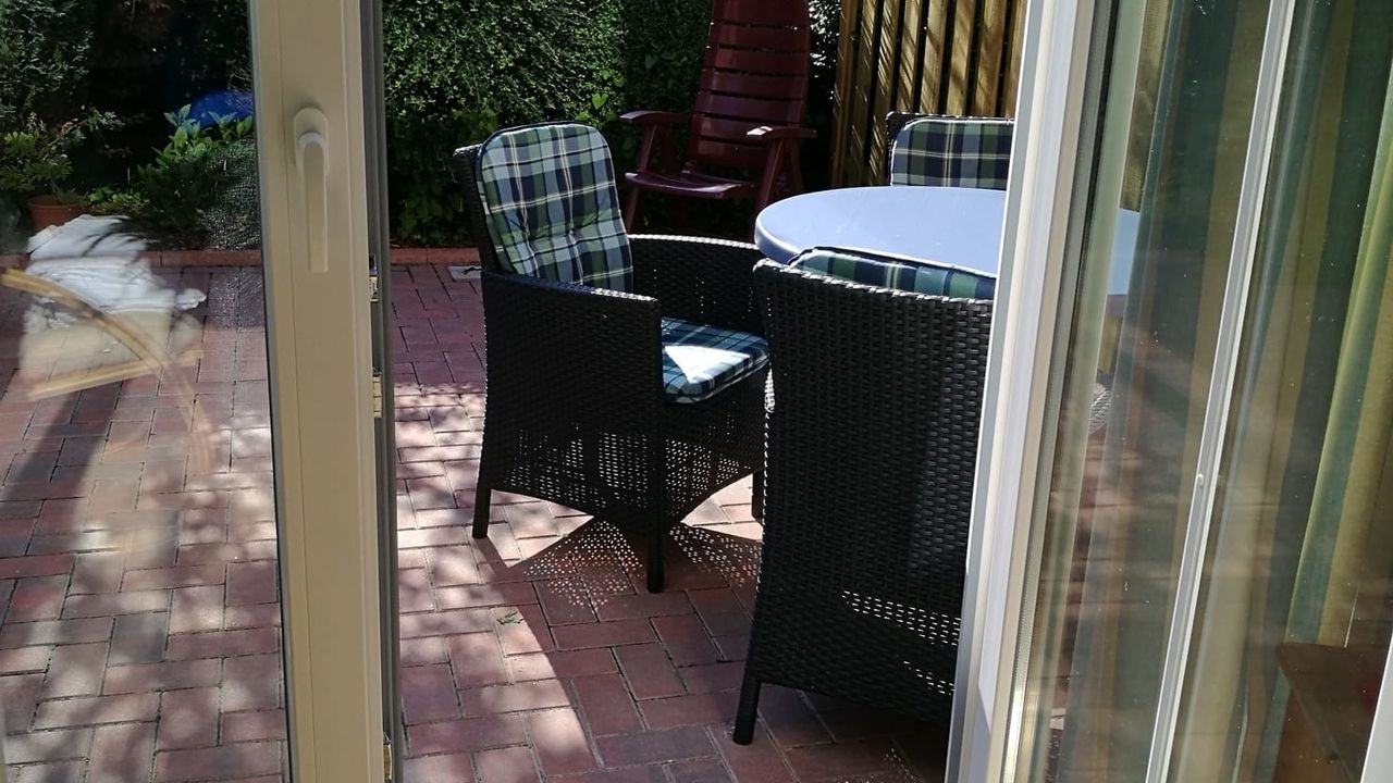 Genießen Sie einen entspannten Aufenthalt auf der geschützt angelegten Terrasse oder auf unserer Liegewiese.