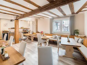 Darüber hinaus gibt es, ein Tagescafé sowie weitere Restaurants in 50m, 150m und in 800m Entfernung. Je nach Jahreszeit bieten auch Heckenwirtschaften eine willkommene Einkehr direkt im malerischen Erlabrunn.