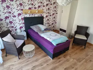 Das Einzelzimmer ist mit einem Einzelbett , einem TV-Gerät (Flachbildschirm), Radio und Kleiderschrank eingerichtet und liegt im Erdgeschoß. Das Badezimmer mit Dusche und WC ist zur Mitnutzung mit einem weiteren Zimmer auf dem Flur.Weitere Angaben: Bettwäsche, Handtücher und Frühstück sind im Preis inklusive. Rauchen ist im Aufenthaltsraum erlaubt. W-LAN-Nutzung nach Vereinbarung.