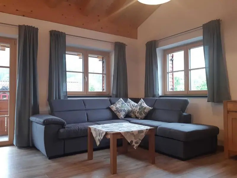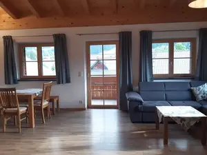 In unserer neuen, großzügigen Ferienwohnung in sonniger, ruhiger Lage mit einmaligem Bergblick heißen wir Sie herzlich willkommen. Wanderwege, Radweg sowie im Winter die Loipe sind nur wenige Meter von der Haustüre entfernt.Die gemütliche Wohnung mit sichtbarem Dachstuhl besteht aus einer großen Wohnküche mit Zugang zum Südbalkon, einem Schlafzimmer, Bad mit Wanne, Dusche, Waschbecken und Fenster, einem separaten WC, Flur, sowie - bei Bedarf - einem separaten Raum mit Stockbett.