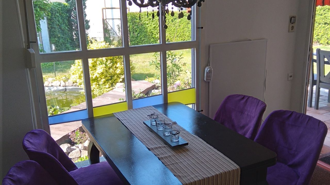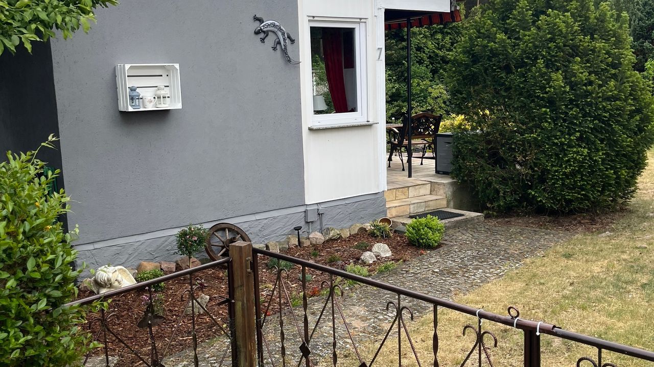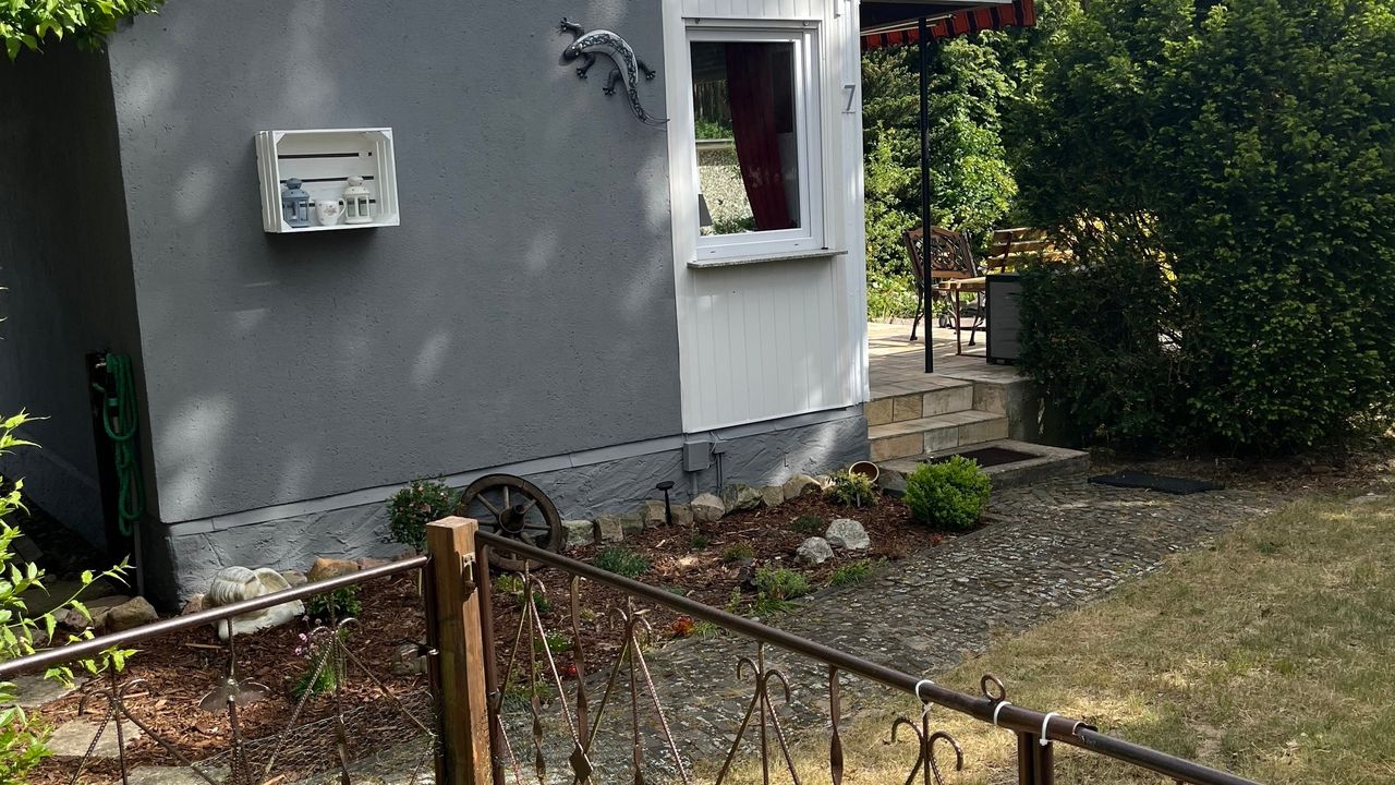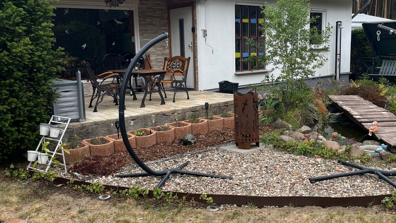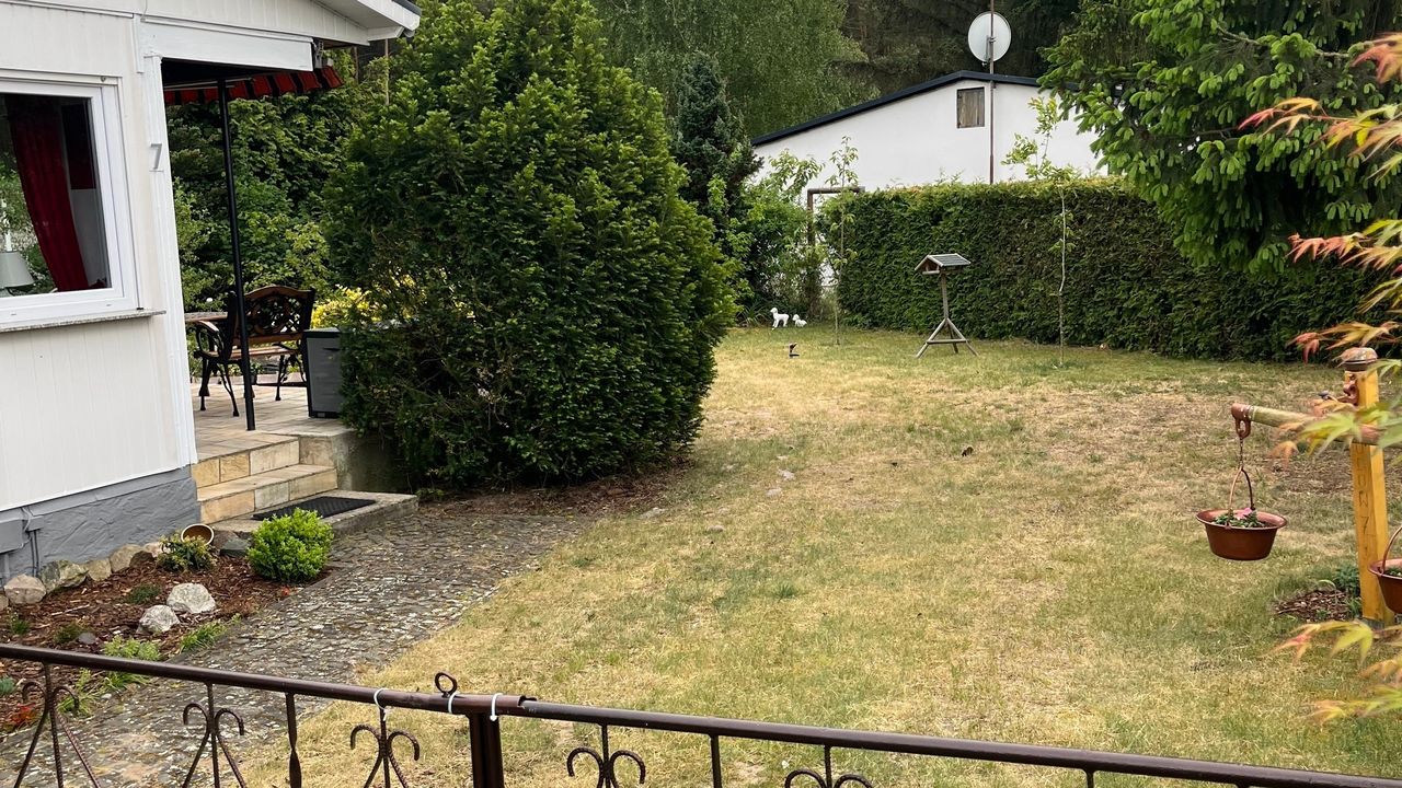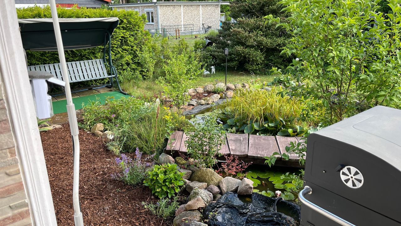 Der Bungalow am Rudower See verfügt über eine Terrasse ,ein Teich mit 2 Hauseigenen Fröschen Namen,s ,,Günter und Heinrich,, die jeden Tag ein Froschkonzert von sich geben(Saisonbedingt bis August). Liegewiese, Solardusche