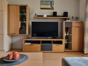 2-Zimmerwohnung bis 4 Personen. OG: Balkon, Wohn-/Küche, Küchenzeile mit Mikrowelle, Geschirrspüler und USB Steckdose. 1 Schlafzimmer, Schlafcouch im Wohnbereich, Dusche/WC, Keine Haustiere. Flachbildfernseher