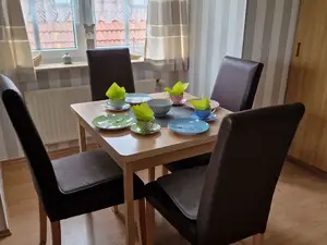 Genießen Sie einen erholsamen Urlaub mit bis zu 4 Personen in unserer ca. 44qm-Ferienwohnung. Hochwertige Möbel, eine neuwertige Ausstattung und eine sehr gut ausgestattete Küche machen den kleinen Unterschied. Das Schlafzimmer verspricht erholsame Nachtruhe und Entspannung vom Alltag. Im modern gestalteten Wohnzimmer bietet die Schlafcouch nicht nur einen guten Schlaf für zwei weitere Personen, sondern auch eine gemütliche Wohlfühloase zum Lümmeln und Lesen. Das neue Bad lässt auch bei 4 Personen keinen Stress aufkommen. Im Keller steht eine Abstellmöglichkeit für 2 Fahrräder zur Verfügung.Nichtraucher