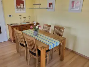 4-Zimmerwohnung bis 5 Personen. OG: Balkon, Wohn-/Küche, Küchenzeile mit Backofen, Mikrowelle und Backofen, 3 Schlafzimmer, Dusche/WC, Waschmaschine gegen Gebühr, Nichtraucher, Keine Haustiere.Internet-Anschluss (W-Lan) in jeder Wohnung. Bitte bei Anreise anmelden.
