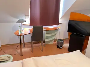 Unsere Einzelzimmer verfügen über ein bequemes 140cm Bett und weisen mit 18 Quadratmetern eine komfortable Größe auf.-Nichtraucherzimmer