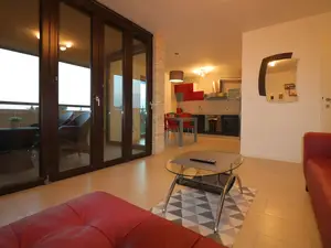 Apartment Lorena Premium lies on the 2st floor of the apartment building and has a total area of 50 sqm. It consists of a spacious living room with equipped kitchen, dining table and chairs, loggia with sitting set and nice view, double bedroom, single room and a shower/toilet.