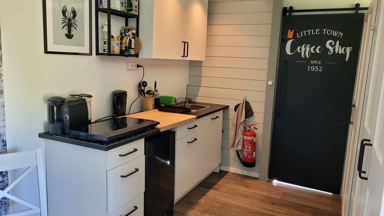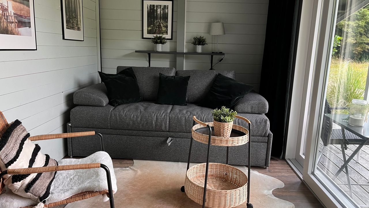 Unser kleines Chalet "Lütje Nüst" ist mit viel Liebe zum Detail eingerichtet und hat neben einer kleinen Küche, einem gemütlichen Klappsofa (Dauerschläfer geeignet ! ) auch einen komfortablen "Magenta-TV" Zugang und ein sehr schnelles WLAN.