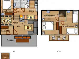 Es bietet einen großen Wohnraum mit hochwertiger Ausstattung - LCD- Fernseher, DVD-Player, Musikanlage, Kamin, Couch und Sessel.
