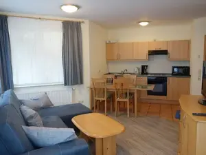 Sie wohnen in einem großzügigen 3-Zimmer-Appartement für bis zu 5 Personen auf 69 m² Wohnfläche. Ein Schlafzimmer mit Doppelbett, ein Schlafzimmer mit zwei Einzelbetten, Wohnraum mit bequemer Schlafcouch für eine Person, separater Essplatz, voll ausgestatteter Küchenbereich mit Mikrowelle und Geschirrspüler, Dusche/WC und Föhn, SAT-Flachbild-TV mit sky-Empfang und Balkon.Sonstiges