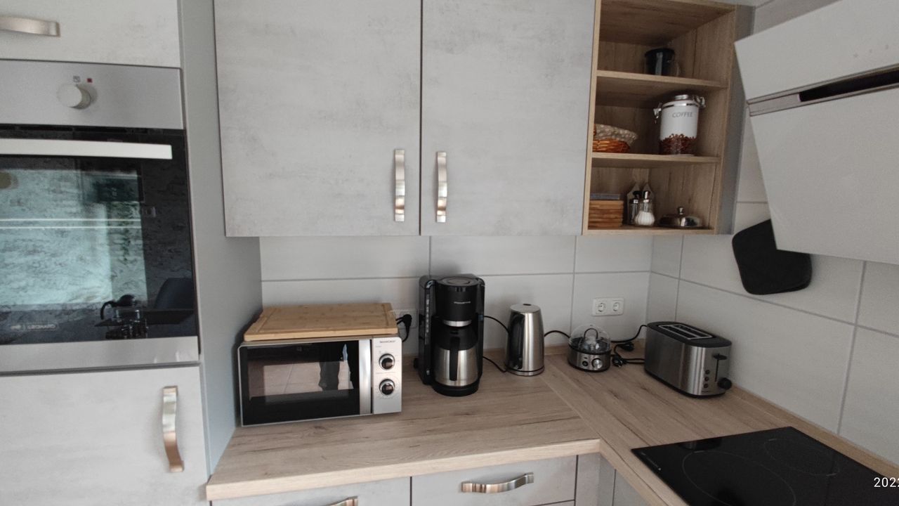 • 1 X Küche (neue Einbauküche) mit voller Ausstattung inklusive aller Elektrogeräte: Herd/Kühlschrank/Eierkocher