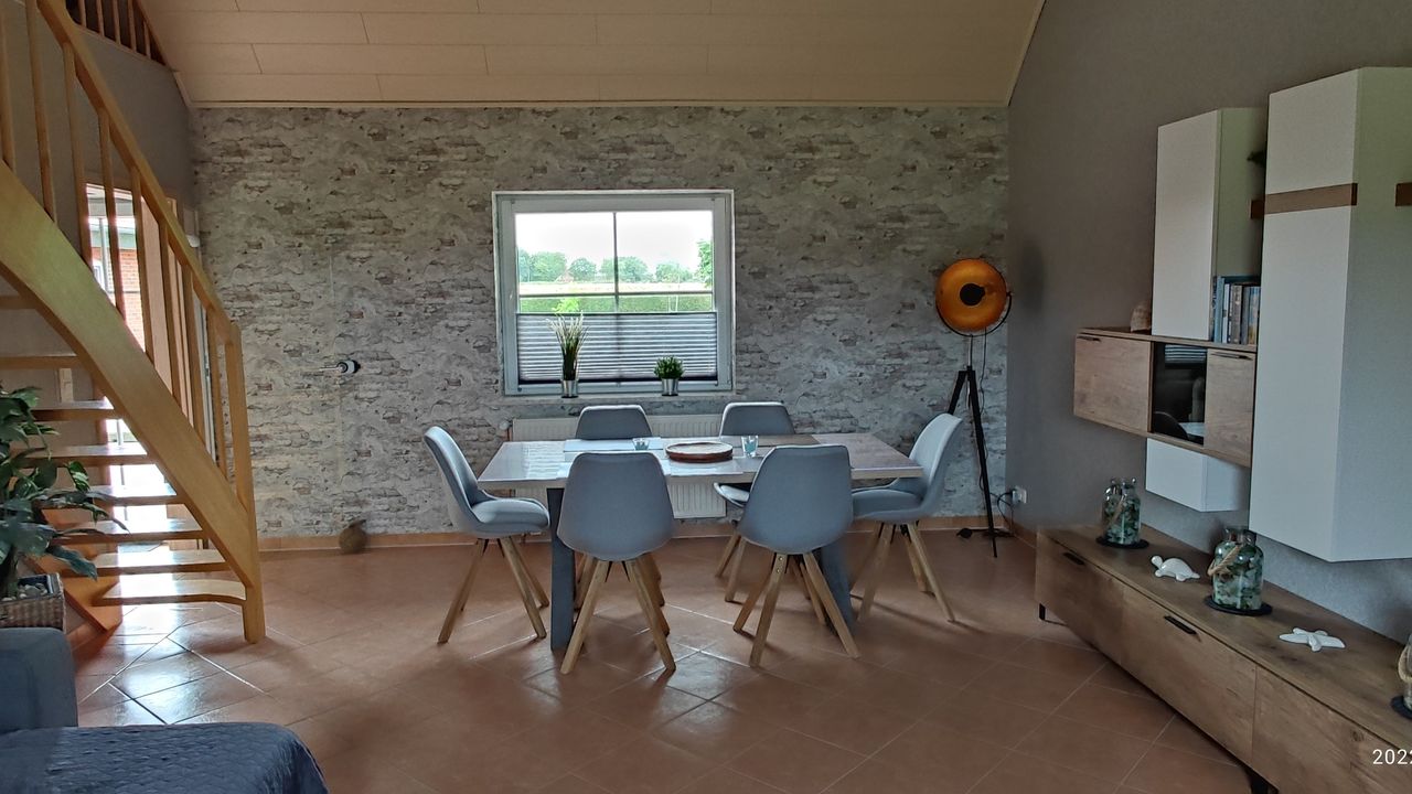 Es wurde frisch renoviert und hat ein modernes Ambiente - gehobene Ausstattung (August 2022) und gilt als Erstbezug. Ein großer Garten (1Hektar) direkt am Deich und Natur Seen im Naturschutzgebiet. Eine große Terrasse sowie eine kleine Terrasse zum Sonnenbaden, privater Parkplatz für Auto und Fahrräder.