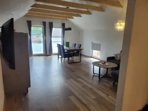 Die aufwendig sanierte Ferienwohnung Schertel im Obergeschoss in Dorsbrunn bietet den idealen Rückzugsort für Jedermann. Der innenbereich der Wohnung ist ebenerdig, nur im Treppenhaus befindet sich eine Treppe mit 13 Stufen, über die Sie in die Wohnung gelangen.Die gehobene Einrichtung der ca. 80 m² großen Wohnung sowie die (eventuell benötigte) Baby- und Kindergerechte Ausstattung bieten einen tollen Urlaub für die ganze Familie.