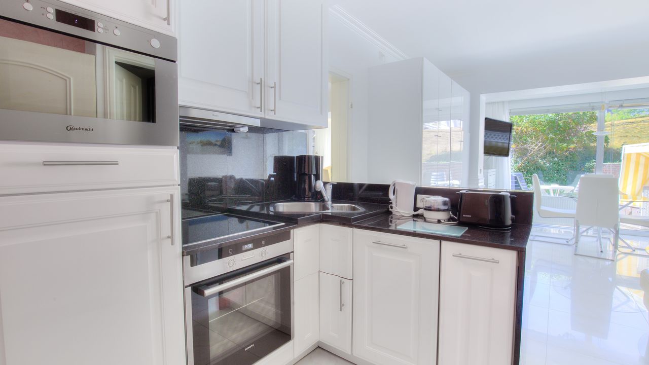 Die integrierte, komplett ausgestattete Küche wird Hobbyköchen sehr gefallen. Im schicken Doppelschlafzimmer mit TV können Sie behagliche Fernsehabende verbringen und eingekuschelt den nächsten schönen Urlaubstag planen.