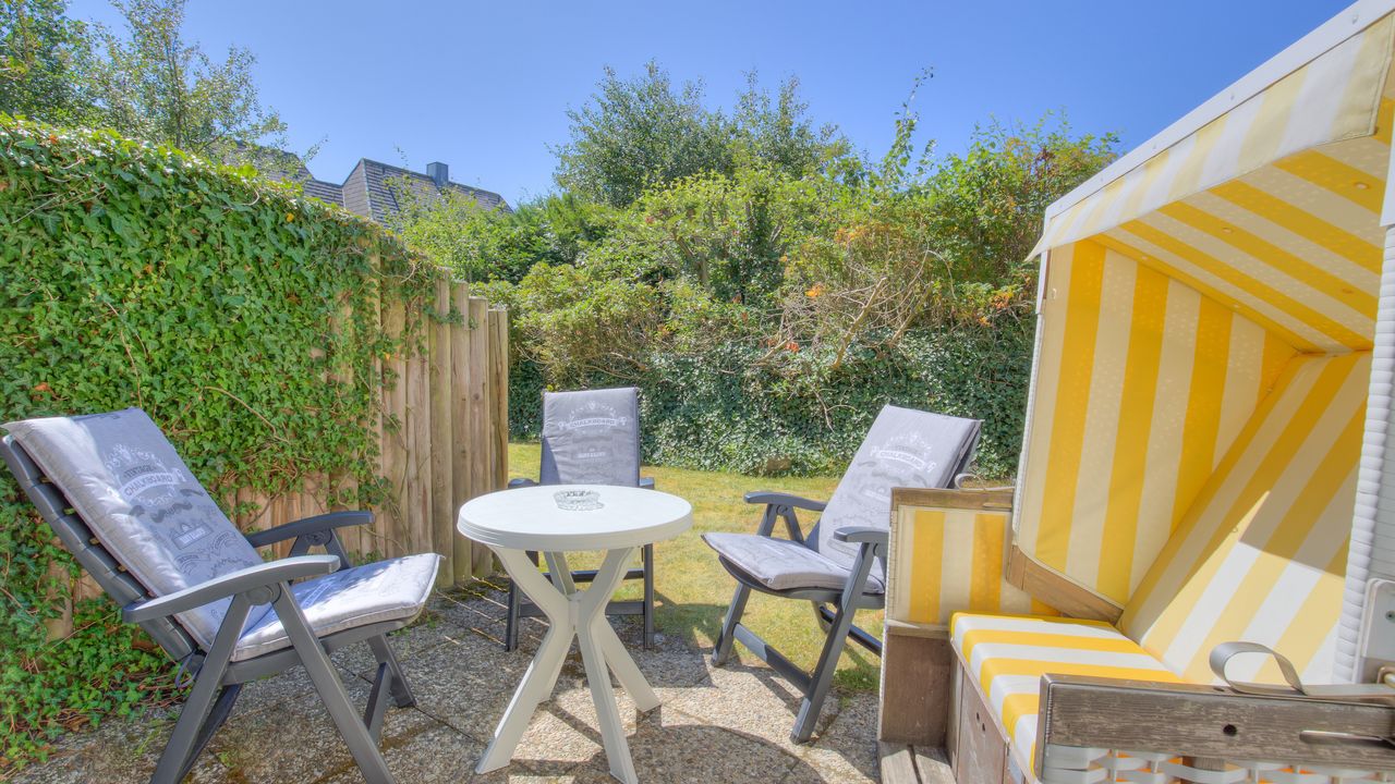 Die beiden edlen Bäder sind einmal mit einer großen Dusche und einmal mit einem Whirlpool ausgestattet - Wellness pur. Auf der großen Süd-Westterrasse mit einem Strandkorb und Gartenmöbeln können Sie die Sylter Sonnenstunden ausgiebig genießen.