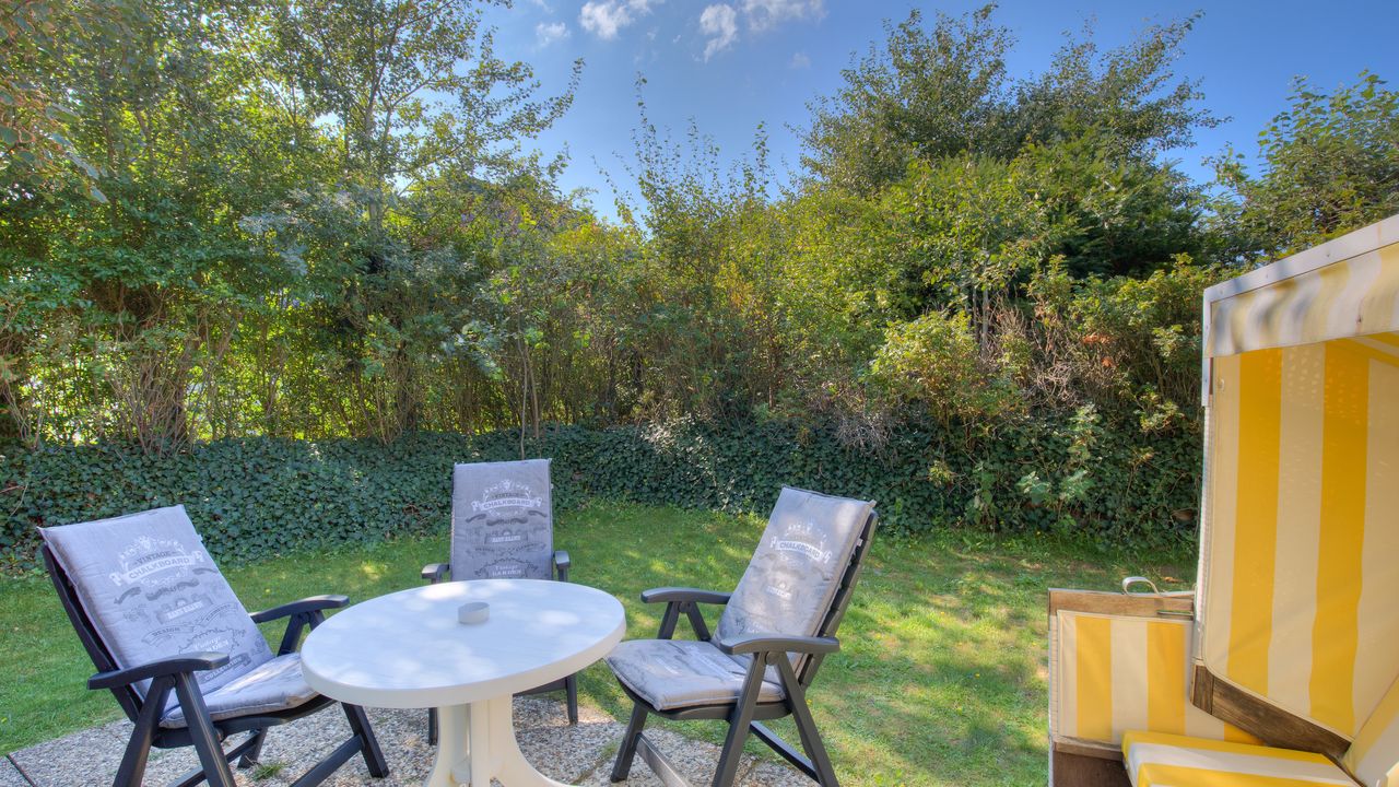 Ein großes, modernes Duschbad ergänzt das Angebot. Die Sylter Sonnenstunden genießen Sie auf der Süd-Westterrasse mit Gartenmöbel und Strandkorb.