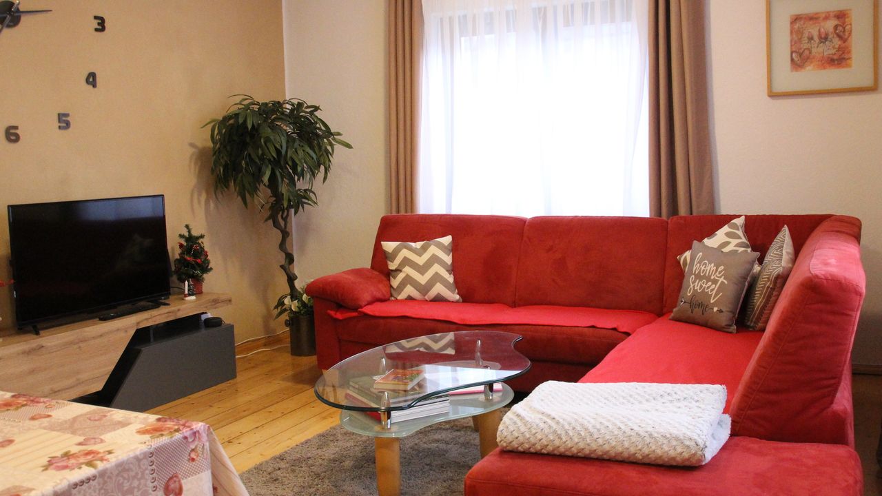 Die Ferienwohnung ist so eingerichtet, dass Sie sich sofort wohlfühlen können: Zwei Schlafzimmer mit Doppelbett, ein Wohnzimmer mit großem Sofa und Fernseher, eine Essecke, eine vollausgestattete Küche und ein kleines Bad mit Dusche und WC auf halber Treppe, einen Garten und Parkplatz direkt vor dem Haus. Außerdem gibt es kostenloses WLAN, Gartenmöbel und einen Grill. Vom Garten aus haben Sie einen wunderschönen Blick auf die Berge.Es gibt zwei Schlafzimmer in unserer Wohnung, die mit sehr viel Liebe renoviert und eingerichtet wurden. In jedem dieser Zimmer befindet sich ein kuschliges Doppelbett, Schränke für die Kleidung und Gute Nacht Lektüre.