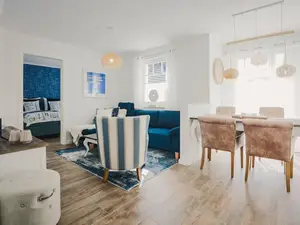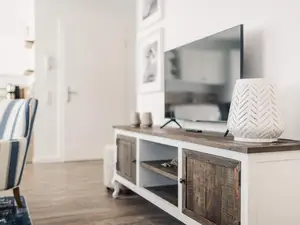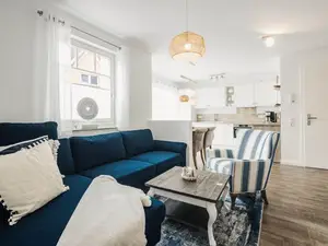Die Wohnung verfügt über einen großzügigen Wohnbereich mit offener voll ausgestatteter Küche mit Spülmaschine, Mikrowelle, Ceranfeld und Kaffeemaschine. In zwei modern eingerichteten Schlafzimmern finden Sie bequeme Boxspringbetten und je ein Smart-TV.