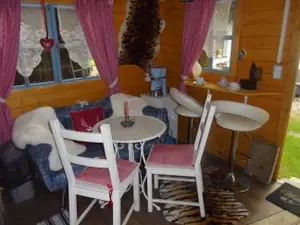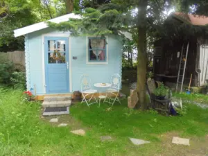 Inmitten eines schönen Romantikgarten, befindet sich das Tinyhaus 1, welches aus finnischen Holz in blauer Farbe erstrahlt. Direkt neben Lissys Romantik-Puppenhaus, welches aufgrund seiner Einrichtung sowohl einen romanti-schen als auch einen rustikalen Flair ausstrahlt, finden Sie einen Steingrill und ein Gourmetgrill vor, wo die lauen Sommerabende genossen werden können. In dem historischen Blockbohlenhaus können Sie von einer kleinen Küchenzeile mit Infrarotbackofen, Spülmaschine und separaten Handwaschbecken bis hin zu einer auskappbaren Bettcouch mit Bettwäsche entdecken. Die romantische Atmosphäre wird durch den offenen Kaminofen unterstützt und strahlt ein gemütliches Ambiente aus. Die Toilette und Dusche ist links nebenan.Inmitten eines schönen Romantikgarten, befindet sich das Tinyhaus 1, welches aus finnischen Holz in blauer Farbe erstrahlt. Direkt neben Lissys Romantik-Puppenhaus, welches aufgrund seiner Einrichtung sowohl einen romanti-schen als auch einen rustikalen Flair ausstrahlt, finden Sie einen Steingrill und ein Gourmetgrill vor, wo die lauen Sommerabende genossen werden können. In dem historischen Blockbohlenhaus können Sie von einer kleinen Küchenzeile mit Infrarotbackofen, Spülmaschine und separaten Handwaschbecken bis hin zu einer auskappbaren Bettcouch mit Bettwäsche entdecken. Die romantische Atmosphäre wird durch den offenen Kaminofen unterstützt und strahlt ein gemütliches Ambiente aus. Die Toilette und Dusche ist links nebenan.