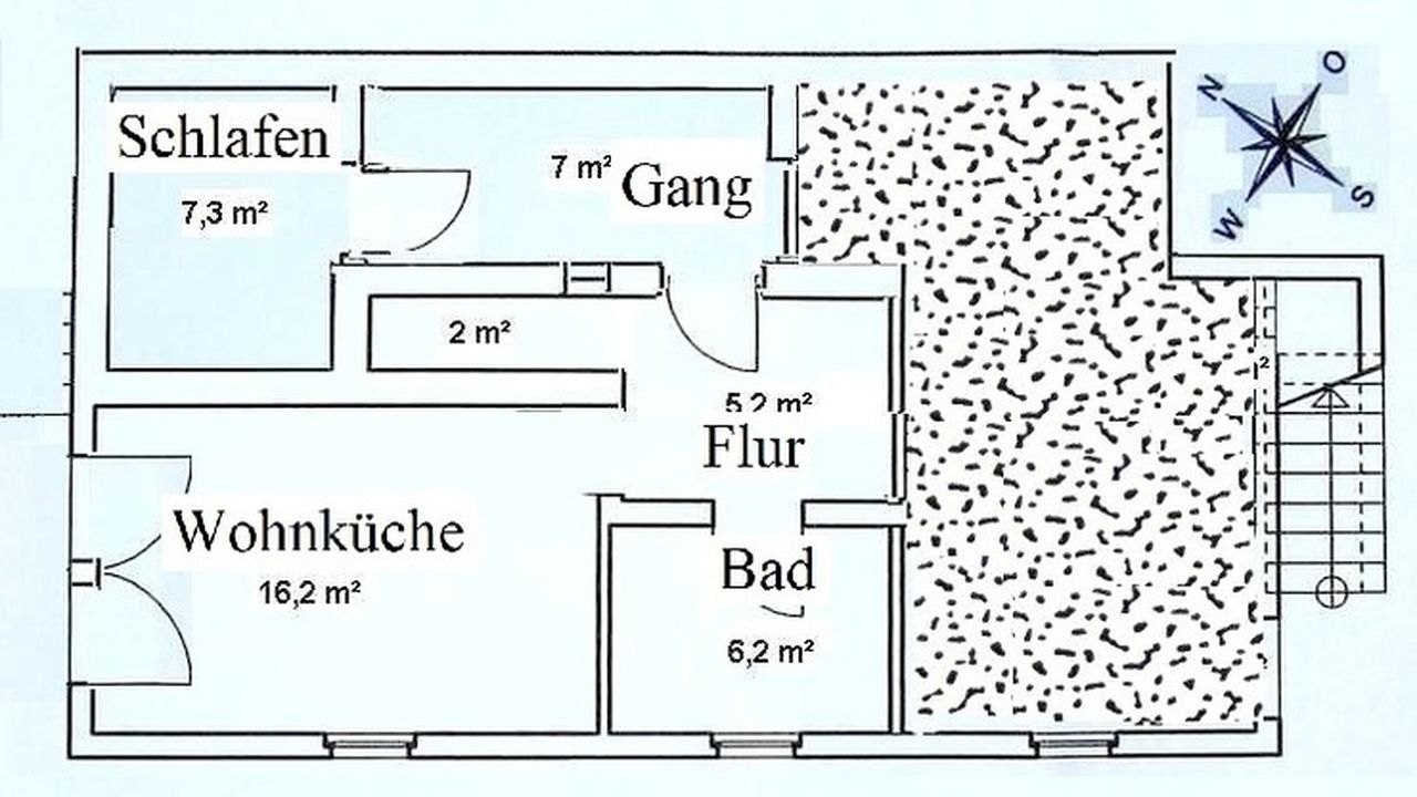 - Zweistöckiger Bungalow besitzt 2 Wohnungen. Hier wird die untere Wohnung angeboten.- Großer wohnungszugeordneter Außenbereich vor und links neben dem Bungalow (ca. 80 qm):