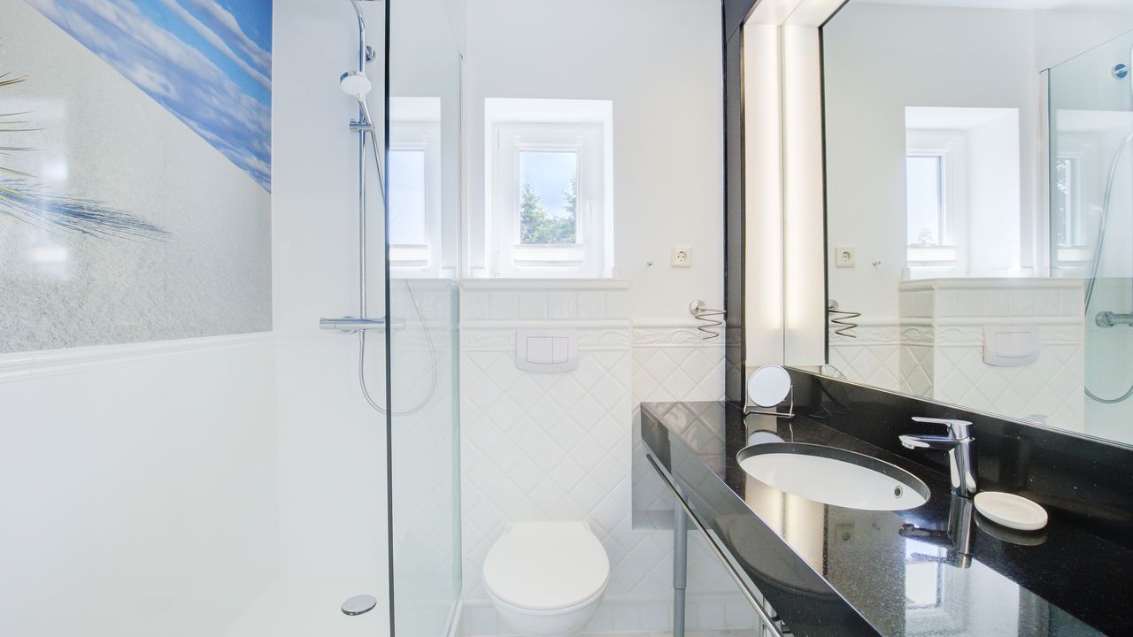 Das hochwertige Bad verfügt über eine Walk-In Dusche.