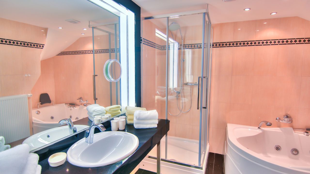 Im gemütlichen Untergeschoss befinden sich die beiden Schlafzimmer mit Doppelbetten, sowie 2 geräumige Bäder mit Whirlpool und Dusche.