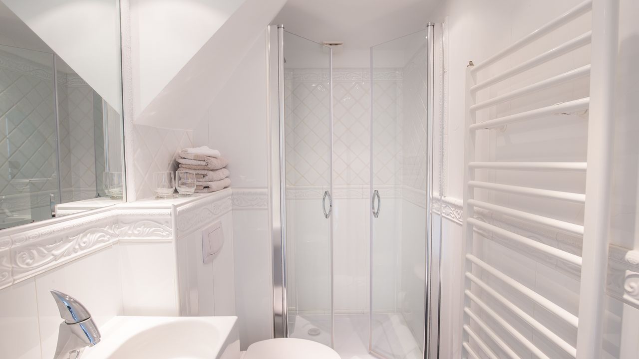Auf der gleichen Ebene gibt es ein modernes Duschbad.