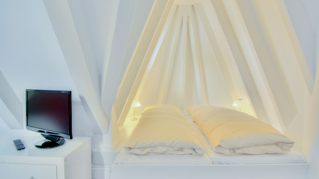 Im Spitzboden entspannen Sie in einem gemütlichen, offenen Kojenbett für zwei Personen.