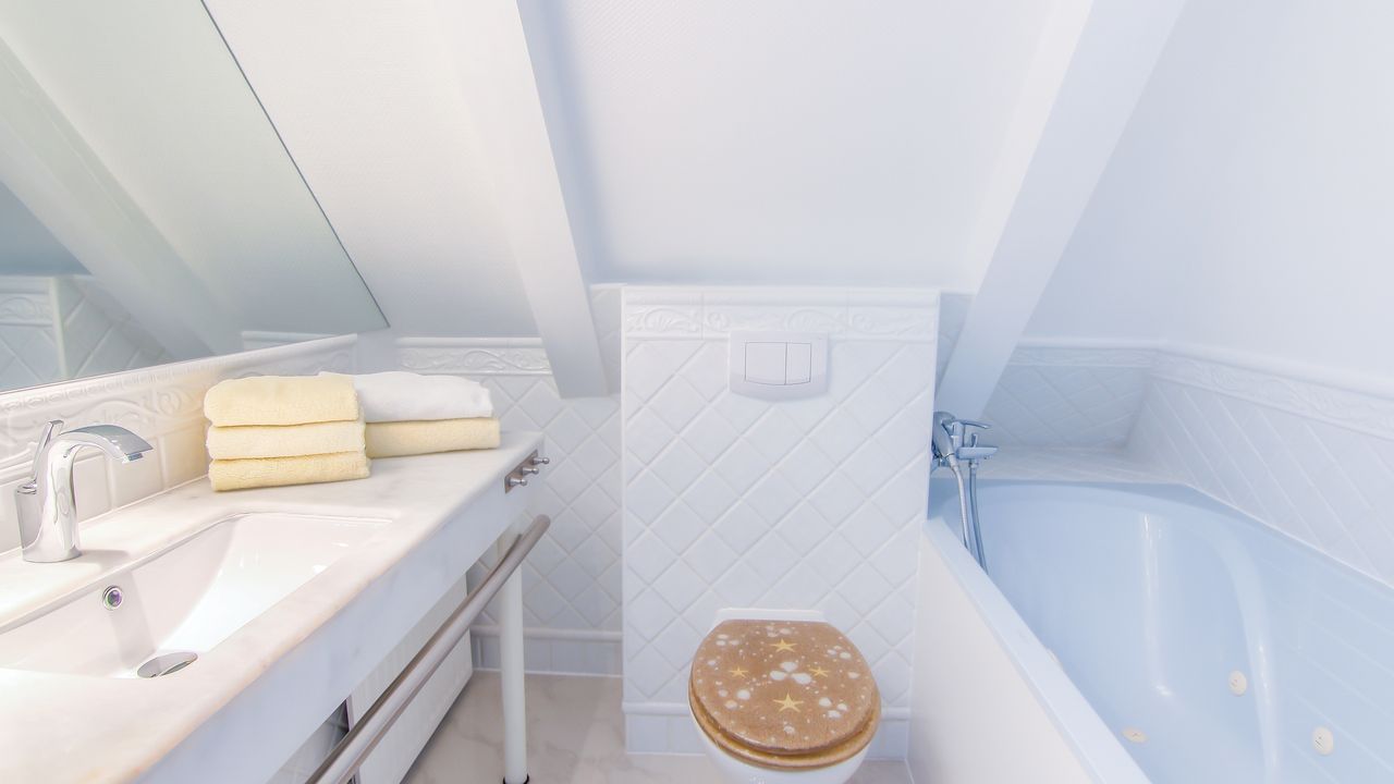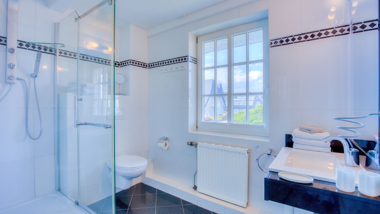 Richtig relaxen kann man im Wohlfühlbad mit Whirlpool oder im unteren großen Duschbad..