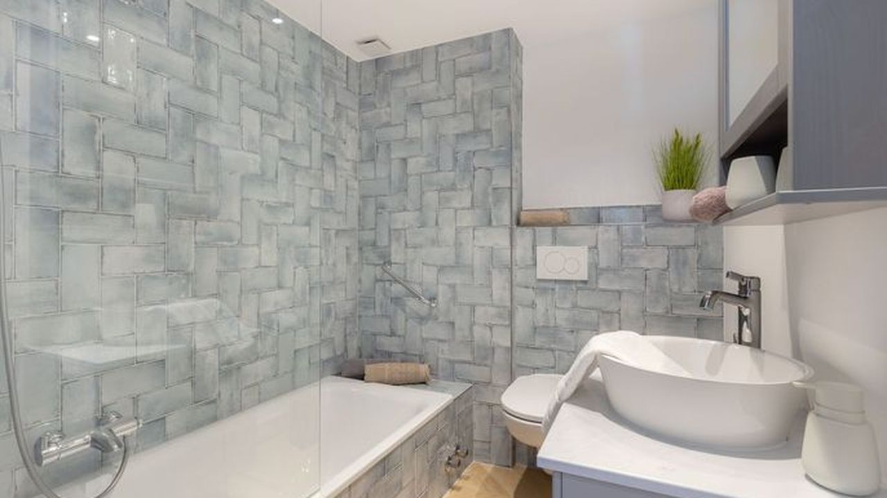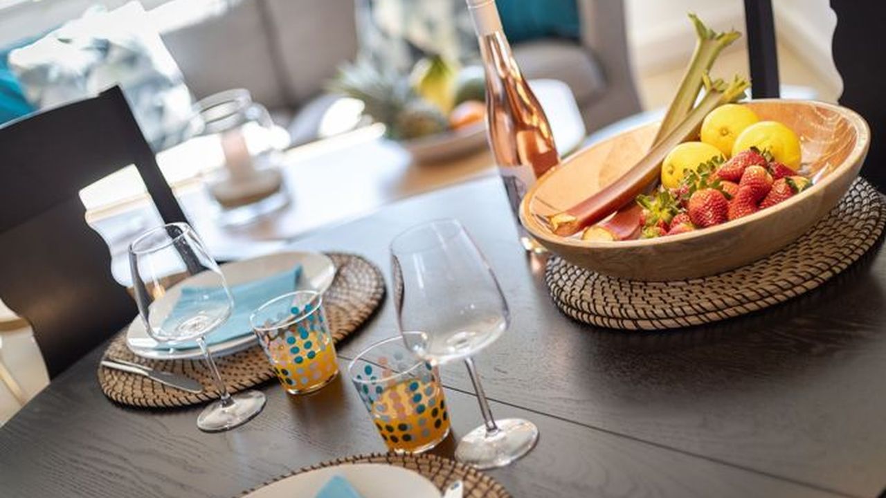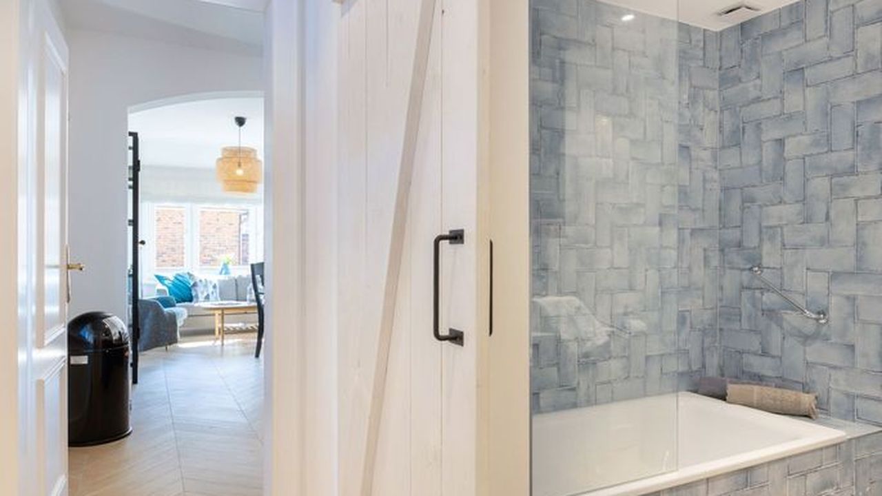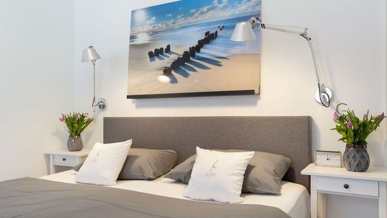Bei der Einrichtung von Achtern wurde besonderen Wert auf geschmackvolles und bequemes Mobiliar gelegt, es gibt ein großes Boxspringbett, ein gemütliches Wohnzimmer, einen Esstisch und eine perfekt eingerichtete Küche mit Spülmaschine, Backofen und einem geräumigen Kühlschrank.