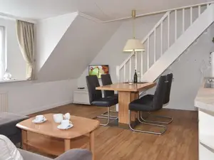 Die moderne und geräumige 3-Zimmer-Ferienwohnung für 4 Personen, ca. 65m², erstreckt sich über zwei Ebenen. Im Obergeschoss befinden sich ein Duschbad / WC, Wohnzimmer mit Essplatz sowie Sitzgruppe, Flat-TV, Radio, Telefon und kostenfreiem W-Lan. Die Küchenzeile ist zum Wohnraum offen mit Geschirrspüler und Mikrowelle ausgestattet. Waschmaschine sowie Trockner sind gemeinschaftlich auf der gleichen Ebene im Obergeschoß nutzbar. Eine Treppe ins Dachgeschoss führt zu zwei separaten Schlafzimmern (alle Betten sind wahlweise als Einzel- oder Doppelbetten stellbar) und einem kleinen Abstellraum. Ein Pkw-Stellplatz befindet sich vor dem Haus. Der gemeinschaftliche Außenbereich bietet einen Terrassenplatz mit Strandkorb und Gartenmöbeln, einen überdachten Sitzbereich, einen großzügigen Fahrradunterstand sowie Schränke für Ihre Golfbags. Tierhaltung ist gestattet und muss kostenpflichtig angmeldet werden. vSonstiges
