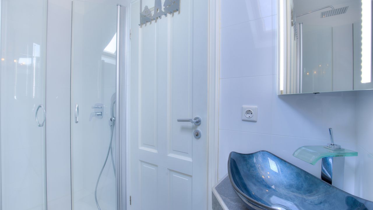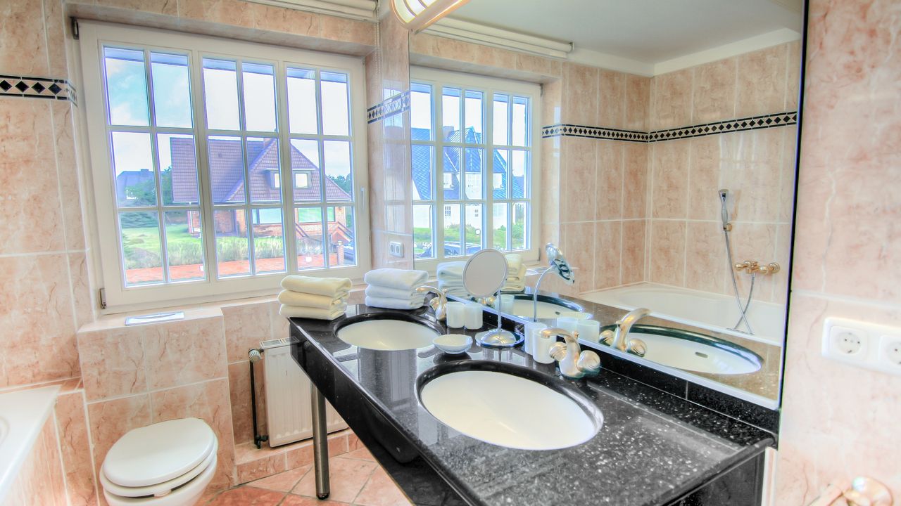 Die Sylter Sonnenstunden genießen Sie auf dem Süd-Westbalkon. Das erste der drei Schlafzimmer, sowie ein Bad mit Whirlpool befinden sich auf dieser Ebene.