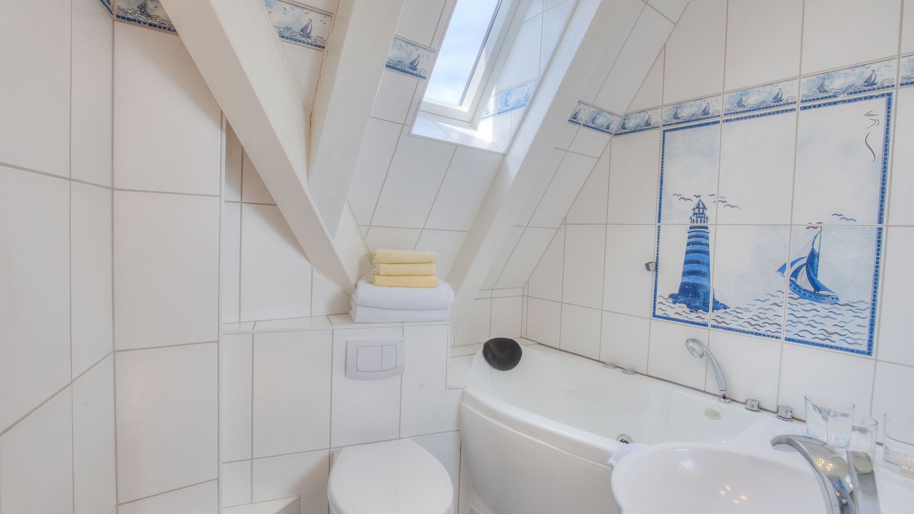 Im zweiten Obergeschoss können Sie in zwei weiteren gemütlichen Schlafzimmern mit Doppelbetten und Bad mit Whirlpool entspannen. Von zwei Balkonen haben Sie einen schönen weiten Blick in Richtung Osten und Süden.