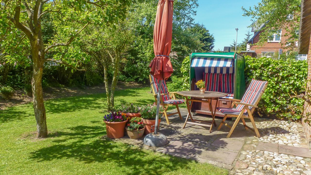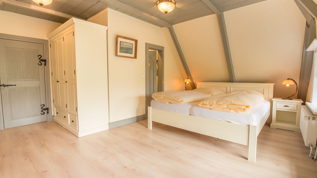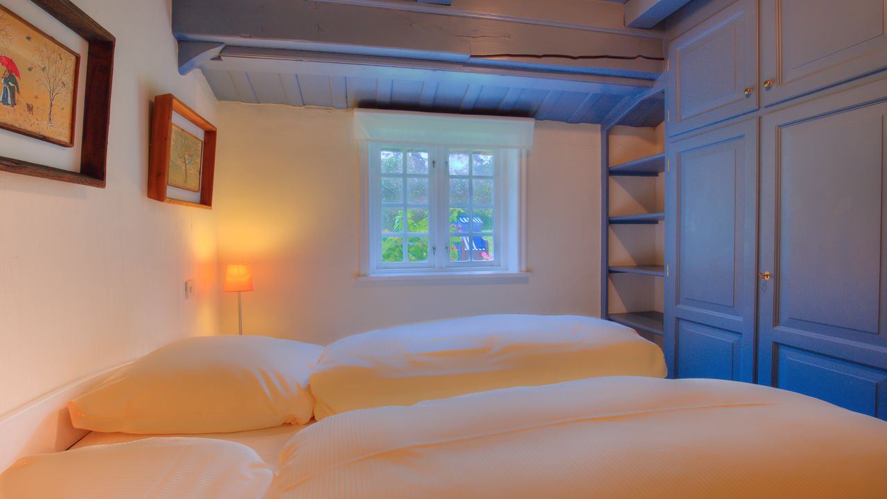 Aus dem Wohnzimmer heraus gelangen sie durch die „Brauttür“ direkt zu Ihrem eigenen nach Süden gerichteten Terrassenbereich mit Strandkorb, Sonnenschirm und Gartenmöbeln – beste Möglichkeiten, um besondere Momente mit der Familie zu verbringen. Die beiden anheimelnden Schlafräume mit Doppelbetten im Erdgeschoss versprechen erholsame Nächte und bieten genug Schrankraum.