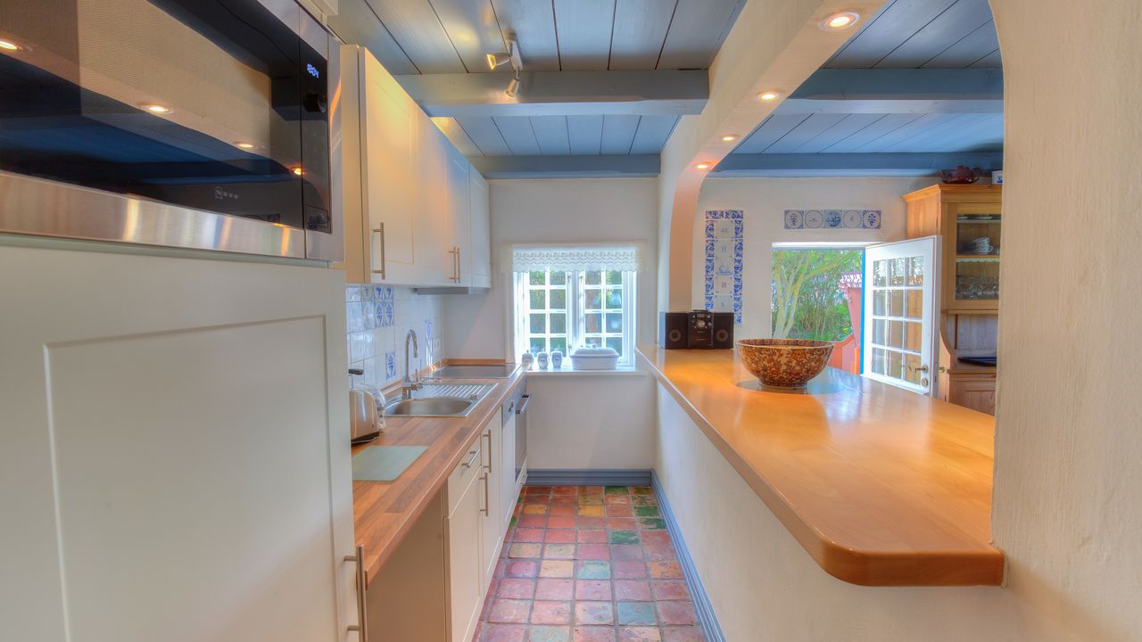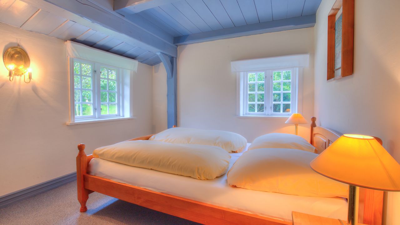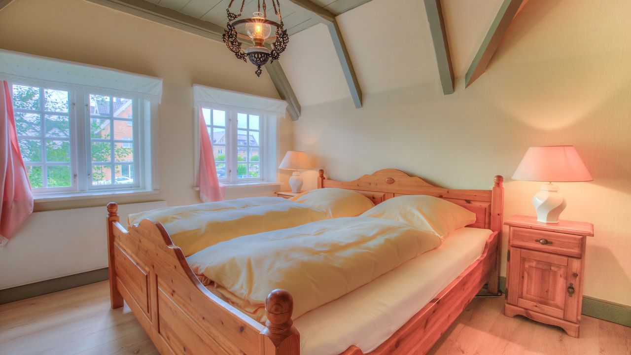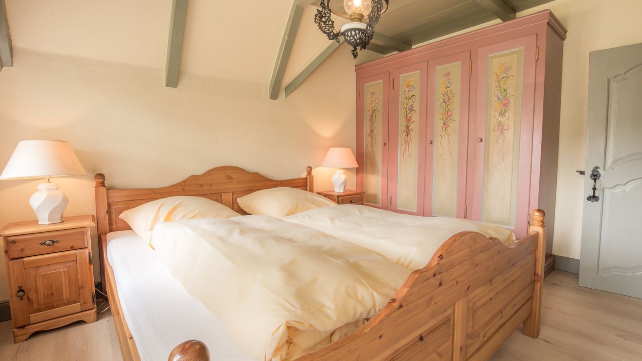 Aus dem Wohnzimmer heraus gelangen sie durch die „Brauttür“ direkt zu Ihrem eigenen nach Süden gerichteten Terrassenbereich mit Strandkorb, Sonnenschirm und Gartenmöbeln – beste Möglichkeiten, um besondere Momente mit der Familie zu verbringen. Die beiden anheimelnden Schlafräume mit Doppelbetten im Erdgeschoss versprechen erholsame Nächte und bieten genug Schrankraum.