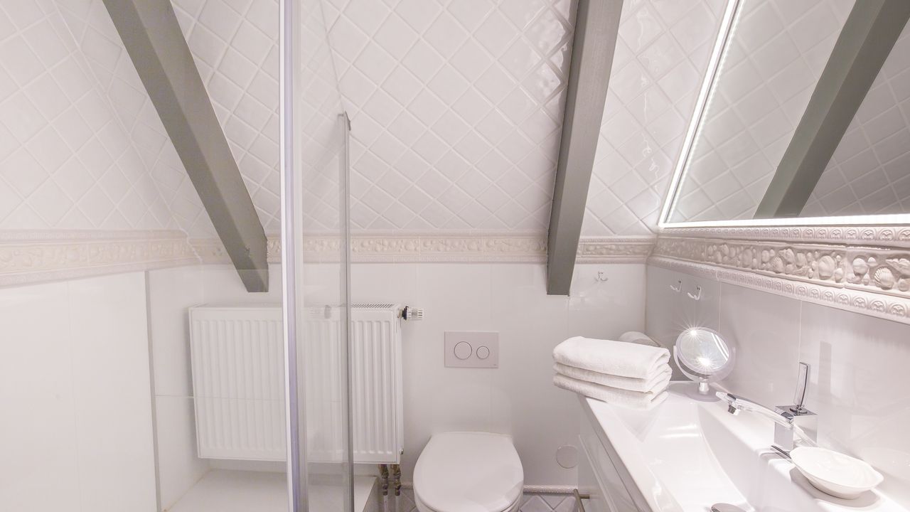 Zudem verfügt das Erdgeschoss über ein geräumiges Duschbad mit WC und Tageslicht. Über das zur Wohnung gehörende geräumige Treppenhaus erreichen Sie die zwei im Dachgeschoss gelegenen Schlafzimmer mit Doppelbetten. Jedes Schlafzimmer im DG verfügt über ein eigenes Duschbad/WC.