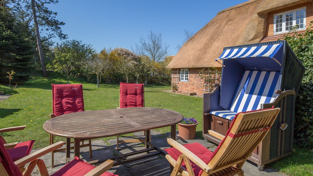 Stilecht auf Sylt unter Reet urlauben in dieser 130m² großen 4 Zimmer-Ferienwohnung im friesischen Stil.Friesische Wohngemütlichkeit und zugleich der Komfort heutiger exklusiver Einrichtung in der Bad- und Küchenausstattung werden sie von diesem Vierraumdomizil S3 überzeugen. Feinste Einbauten, Bodenbeläge aus antiken Plavoisen, wertvolle Delfter Fliesen im Wandbereich – all das verleiht dieser Wohnung ein ungemein angenehmes Wohnflair.